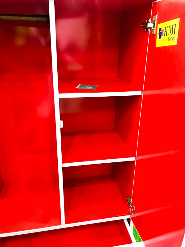 *The cupboard is fitted with strong  wheels to move it from one place to another.