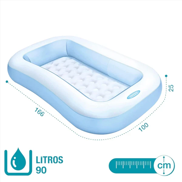 Bring water play to your home with the Intex Rectangular Baby Pool, a spacious and safe inflatable pool ideal for toddlers and young children in Pakistan. Measuring 65.5" L x 39.5" W x 11" H (approx. 5.4 x 3.2 x 0.9 feet), this pool offers just the right depth and space for little ones to splash and play comfortably.