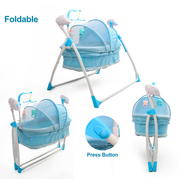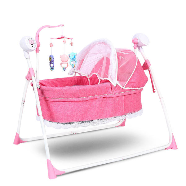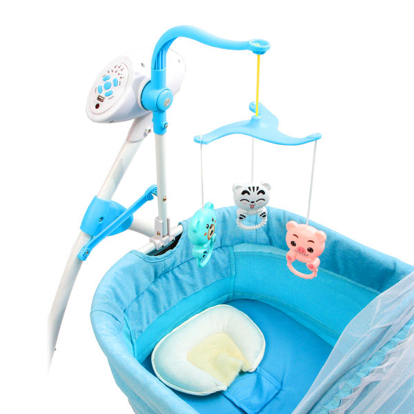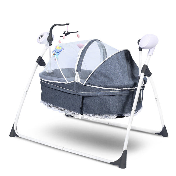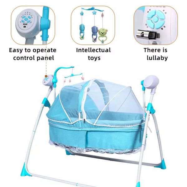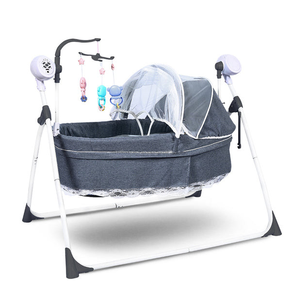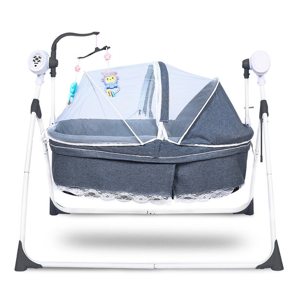 Designed with safety and entertainment in mind, this 2-in-1 baby electric cradle bed and cot swing offers a seamless transition between playtime and exploration. With its adjustable speed and volume settings, three timer options, and a range of intellectual toys, this cradle bed and cot swing provides endless hours of entertainment and learning for babies.