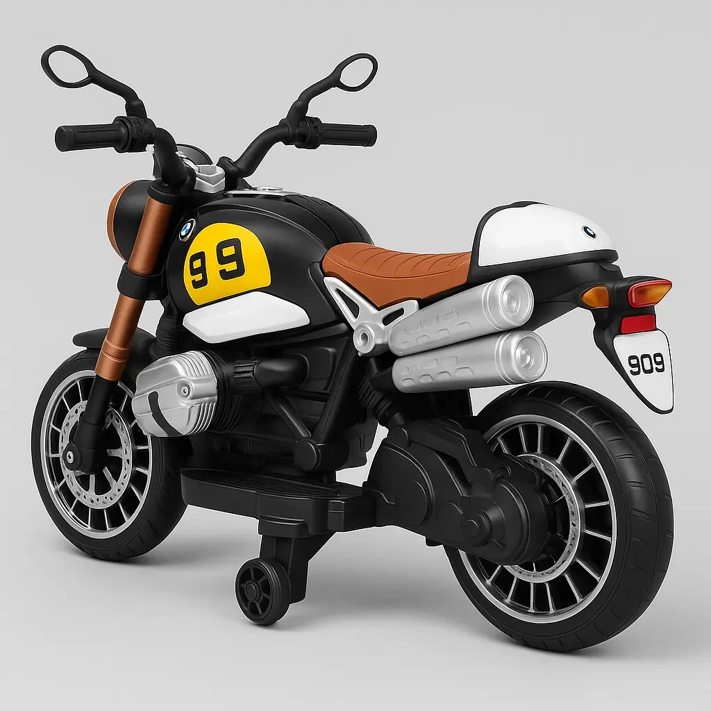 Give your child the thrill of riding with our Cafe Racer Battery Operated Bike for Kids, perfect for ages 2 to 8. Designed with a sleek café racer look, this electric ride-on bike features realistic engine sounds, LED lights, dual exhausts, and sturdy training wheels for added safety.