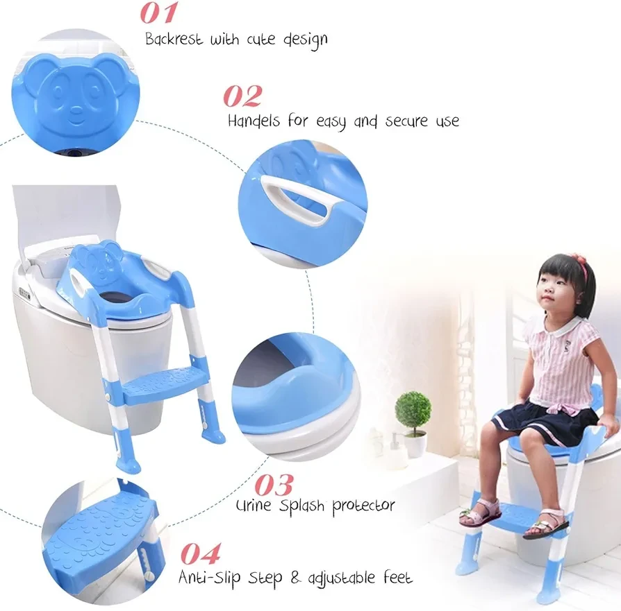 Junior Kids Potty Training a safe and kids-friendly seat, its non-slip wide step design and double handrail make it safer and more convenient for babies to climb and descend the ladder.