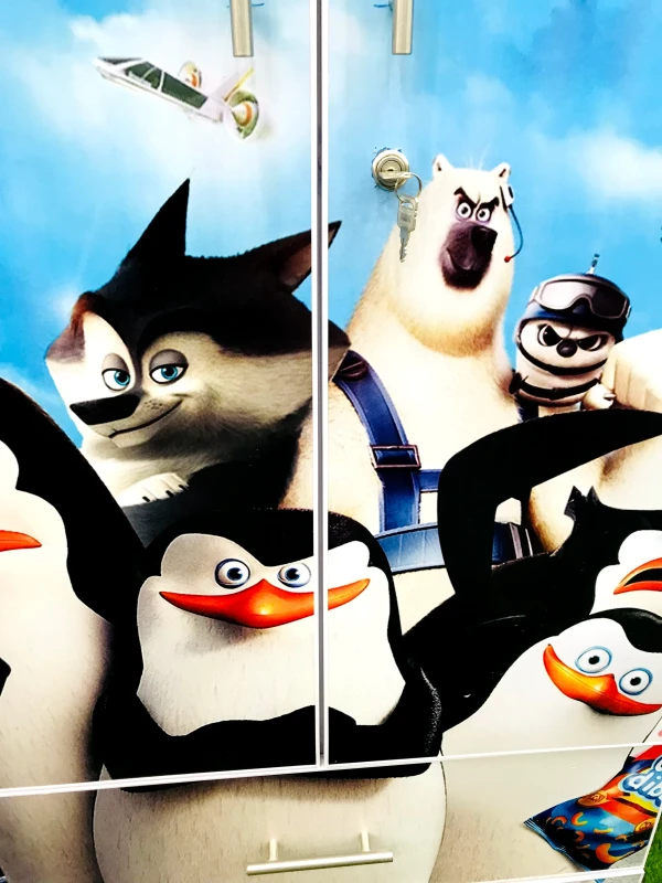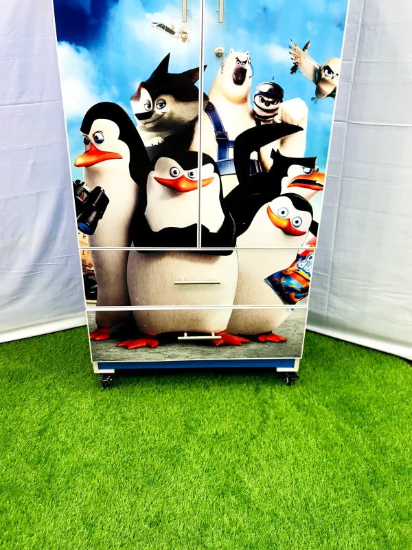 *This vinyl sticker is pasted on the cupboard which is shaped like cartoon .