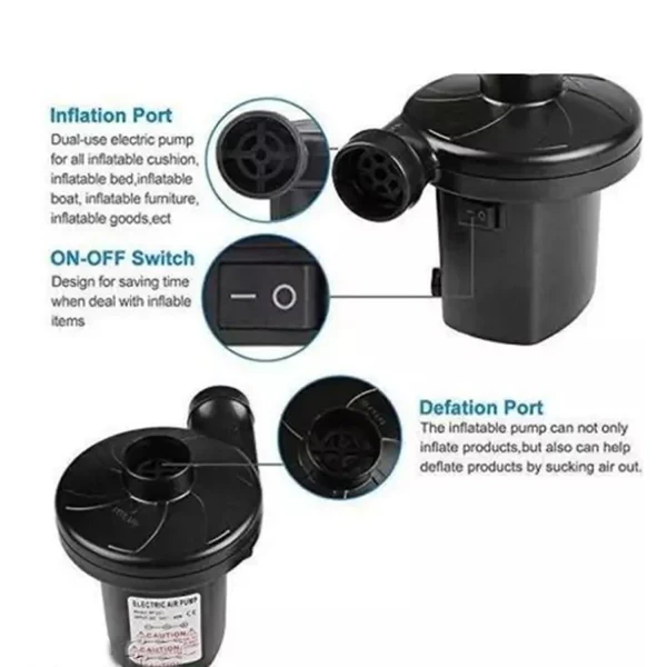 Say goodbye to manual pumping and enjoy hassle-free inflation with the Electric Air Pump, designed to quickly inflate a variety of inflatable products. Whether you're setting up an Intex or Bestway pool, inflating an air mattress, or filling up toys and float rings, this pump gets the job done in seconds.