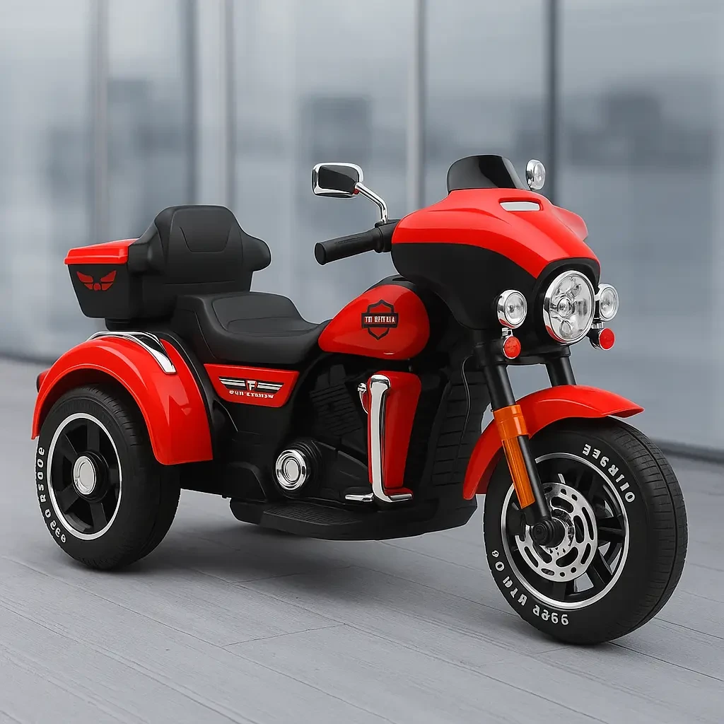 Let your little rider hit the road in style with this Harley-inspired Kids Electric Three-Wheel Motorcycle. Designed with safety, comfort, and fun in mind, this battery-powered ride-on bike features a sleek red finish, wide tires for stability, working headlights, realistic engine sounds, and a comfortable seat with backrest. Perfect for ages 3–8, it's equipped with forward and reverse gears and rechargeable battery power for extended playtime indoors or outdoors.