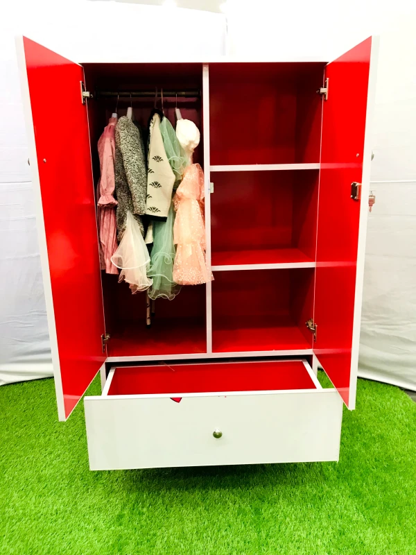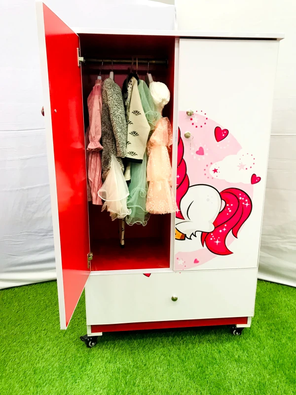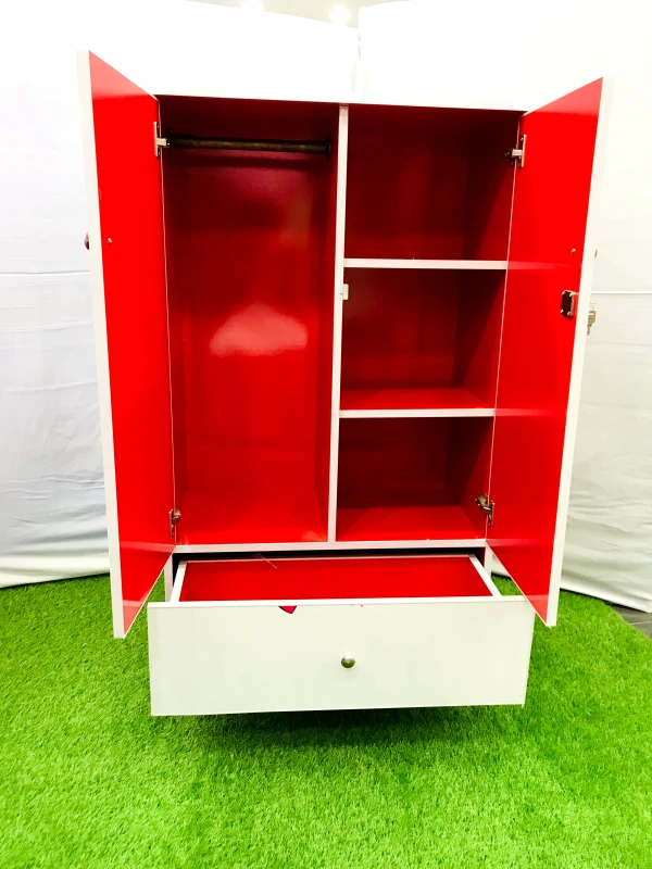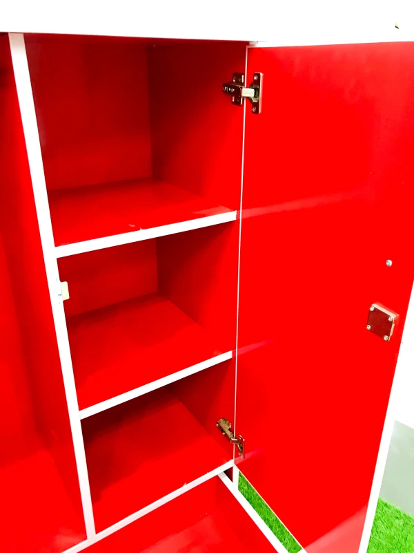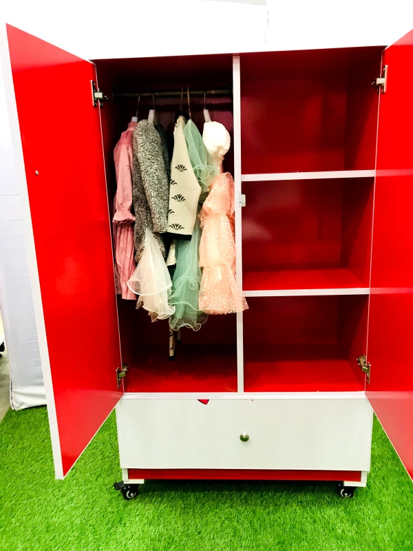 *The cupboard is fitted with strong  wheels to move it from one place to another.