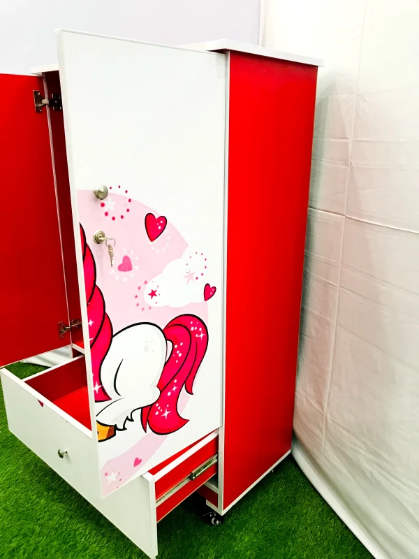 *This vinyl sticker is pasted on the cupboard which is shaped like cartoon .