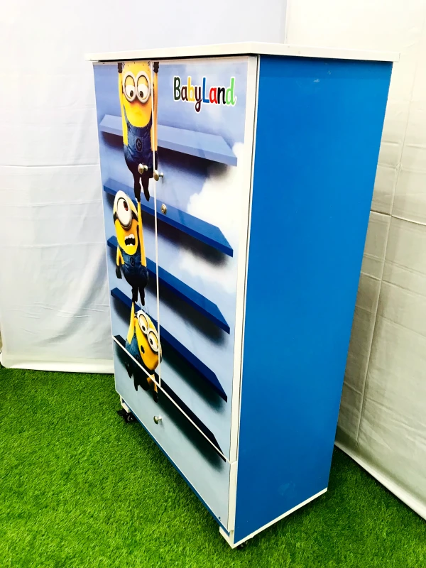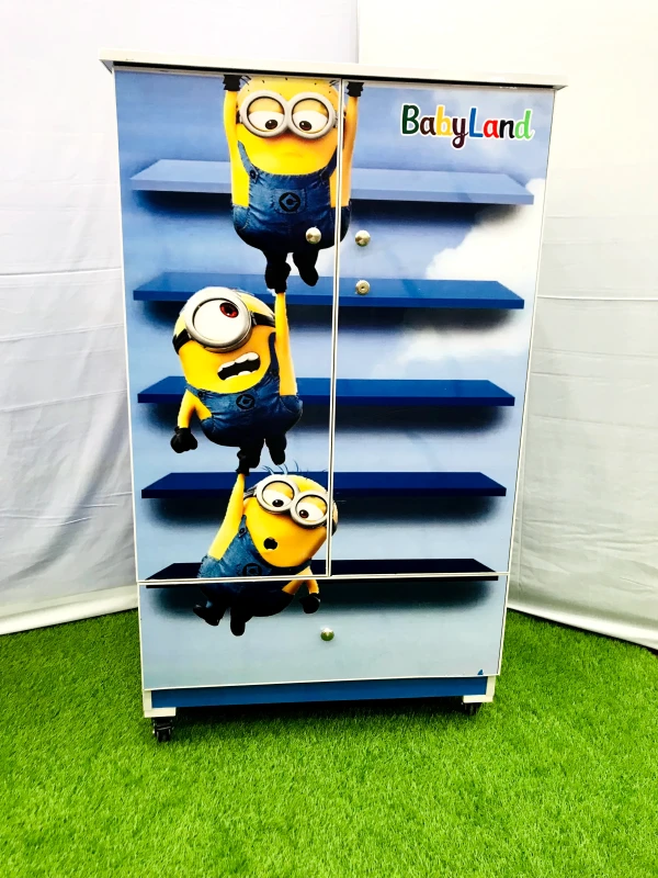 *This vinyl sticker is pasted on the cupboard which is shaped like cartoon .